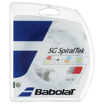 Babolat's new synthetic gut. SpiralTek is a solid core string made with a durable polyamide core and wrapped with flexible filaments. The result is a comfortably crisp synthetic gut that offers the comfort of a gut with some of the power and durability of tougher strings.