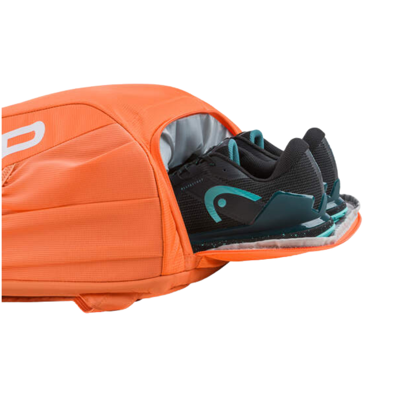 Stand out on court with the HEAD TOUR Backpack 25L, crafted from premium fabrics including a reflective panel for improved visibility in low light. Designed for convenience, the bag features an external phone pocket for quick access and keeps your gear organised with two main compartments. Carry up to two rackets, with additional storage in two external pockets for water bottles or ball cans, plus a dedicated shoe compartment to keep footwear separate. Padded construction adds stability, and eco-conscious details include a recycled paper hangtag with hemp cord and recycled plastic packaging.
