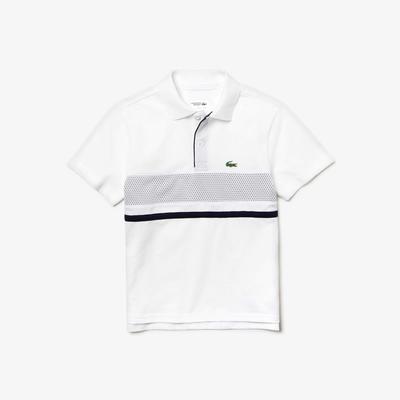 Lacoste Boys Mesh Panel Ultra Light Polo - White/Navy Blue