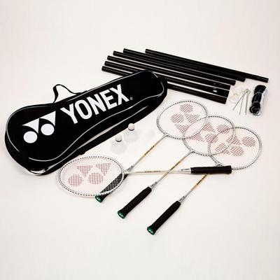 Yonex GR-303S Badminton starter kit with 4 rackets, net and 2 shuttlecocks.