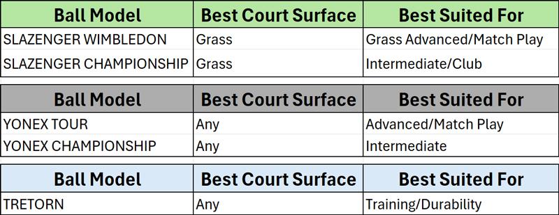 For most recreational players, a quality all-court pressurised ball is the safest choice. For heavy practice sessions, pressureless balls are excellent value. For young players, stage balls are essential.