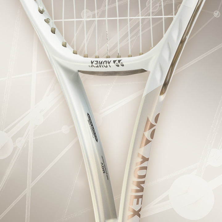 Yonex's signature ISOMETRIC head shape enlarges the sweet spot by optimizing the intersection of the main and cross strings.